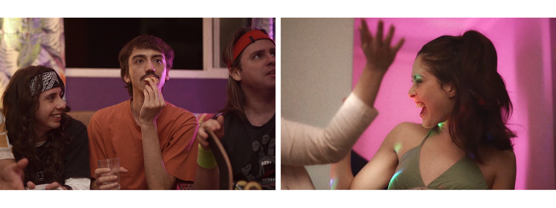 Tivemos como referência a saudosa locadora de filmes com os VHSs, dos finais de semana em casa com os amigos e festinhas caseiras. Então o Pedro Lot fez alguns efeitos especiais práticos e Paulo Doi mandou nos esfeitos especiais digitais.